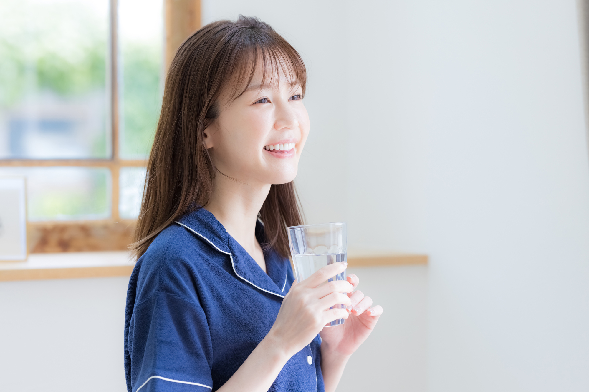 仕上げにコップ半分ほどの水を飲む習慣を。睡眠中の乾燥をやわらげ、口内細菌の増殖を抑えるサポートになります。